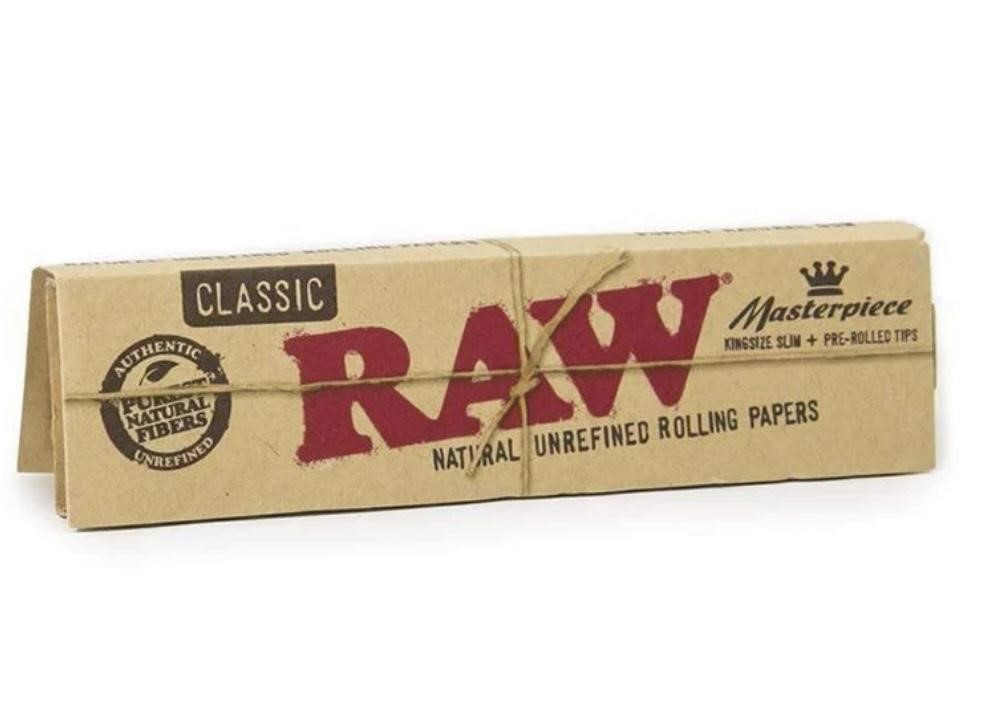 These King size rolling papers come with their own pre-rolled tips in each pack, so there is no need to buy your own. Each pack of RAW Masterpiece King Slim with Pre-rolled Tips contains 32 papers and 24 tips and are made of a natural blend of unbleached, additive-free fibers that create a distinctive brown hued rolling paper. Get in touch with your natural side by smoking raw rolling papers. You won’t be disappointed. RAW Papers are durable and sturdy yet ultra-thin enough to almost be translucent. Proudly free from added dyes or chalk
